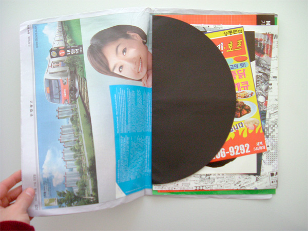 Double bind is conceptually specific for Manuel Raeder’s design works. They have two incompatible requests that lead to two different forms of consciousness. It seems a negation that is primarily proclaimed. That leaves you with nothingness. However, on another side, and probably at a deeper level, you can find multiple layers of sense within conceptual framework and also beyond. Therefore point of conflict turns out to be a positive source that can make your sensual and intellectual experience in his works more intensive. For the flyer project Manuel Raeder designed a circular shaped paper that was produced in three different colors. Nothing is written on it and with it. This circular shape becomes odd in the context where the flyer is actually placed, that is between newspaper and flyers, especially when the others are unexceptionally rectangular standing for efficiency. The basic idea of this flyer came from the use of it as bird carpet. Yet, in the project it suggests all possible usages improvised by the receivers themselves: children can draw on it, housekeeper wraps stuff with it, students use it as mouse pad, anything is open to you.